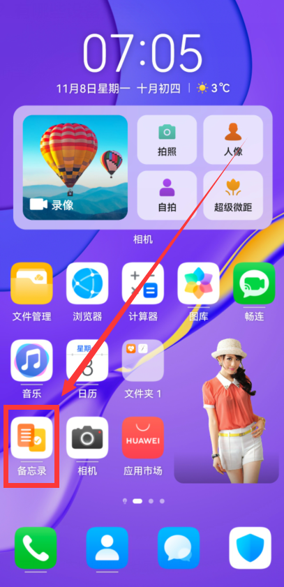 这里以华为手机为例,我们在华为手机的桌面上找到“备忘录”app,如果没有找到,可以到“华为应用”文件夹里找一下,一般都放在这个文件夹里。