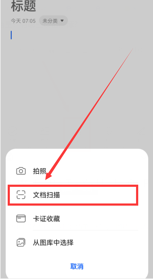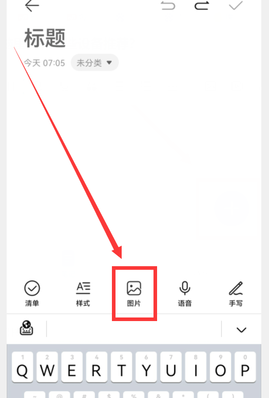 在这个笔记编辑界面,我们可以看到5个按钮:清单、样式、图片、语音、手写。这里我们点击“图片”按钮(如上图),这时,屏幕底部会弹出一个弹窗,上面有4个选项(如下图)。
