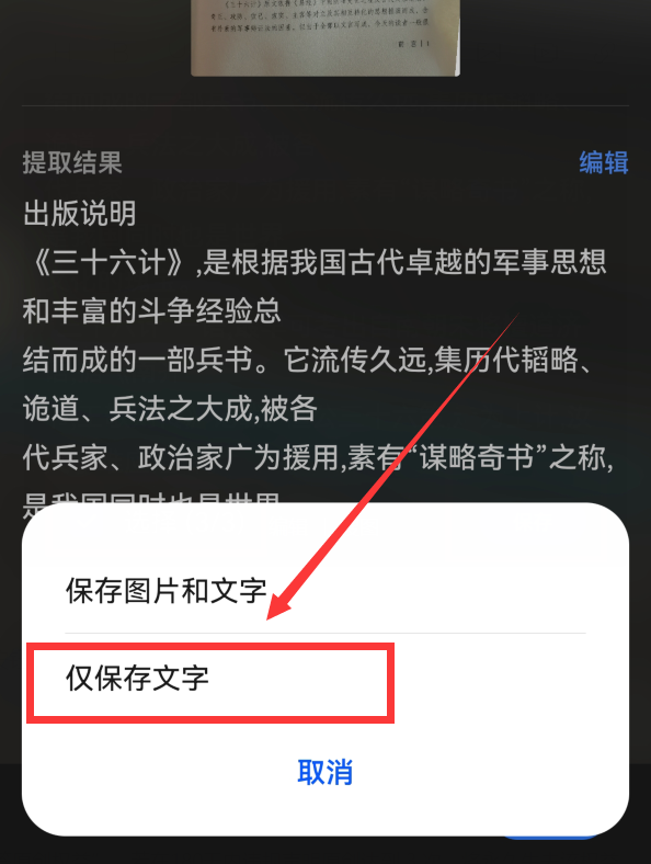 点击“仅保存文字”选项,这3张书本页面上的文字就全提取到备忘录的笔记里了(如下图)。