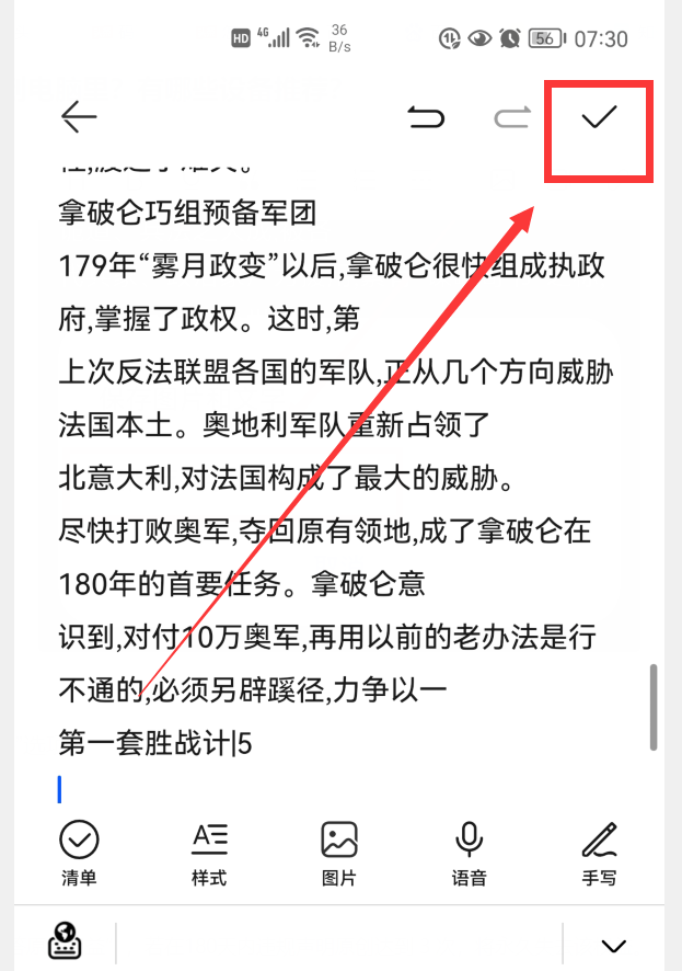 我们点击右上角的对号按钮,就保存到备忘录里了。