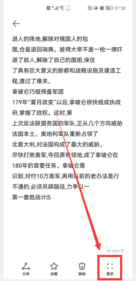 这个时候,这些被扫描的文字,还只能在备忘录时查看,并不是可以移动的电子书。我们还需要点击右下角的“更多”按钮(如上图)。