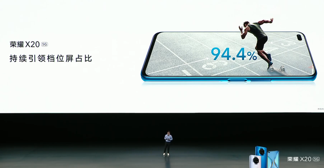 荣耀X20正面采用了6.7英寸双挖孔LCD屏,正面屏占比为94.4%,屏幕刷新率120Hz,屏幕通过了德国莱茵护眼认证,支持原彩显示,支持DCI-P3色域,左右边框1.05mm、上边框1.1mm,配备3.5mm耳机接口。