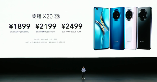 荣耀X20发布,66W快充+6400万主摄,起售价1899元