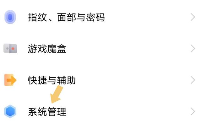 该步骤适用于手机设置带有搜索功能的手机,如果手机不带有搜索功能,进入“设置”界面后,可以下拉菜单找到“系统管理”。如下图: