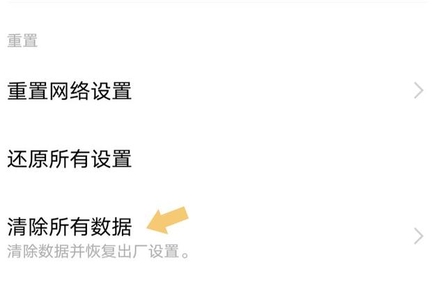如上图所示,“清除所有数据”选项,就是手机(恢复)出厂设置的选项。