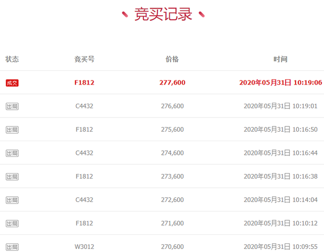 该标的网络拍卖成交价格:277600(贰拾柒万柒仟陆佰元)