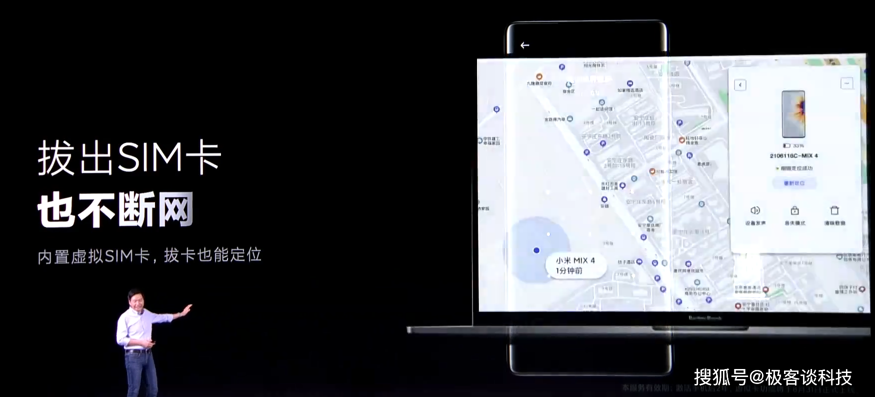 小米MIX4发布会上,雷军详细介绍了该款手机的防丢服务。