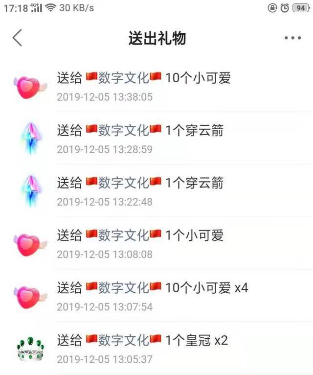 爆料网友给对方打赏礼物