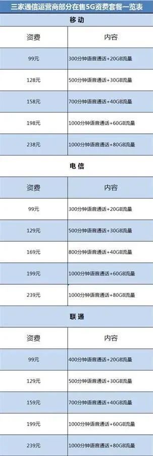 据了解,三家通信运营商推出的百元以内5G套餐,线上线下都可办理。湖北电信推出的99元5G春风卡、湖北移动推出5G悦享春风卡99元套餐,分别包含300分钟语音通话和20GB流量。联通推出“畅爽冰激凌5G套餐99元”,包含400分钟语音通话和20GB流量。