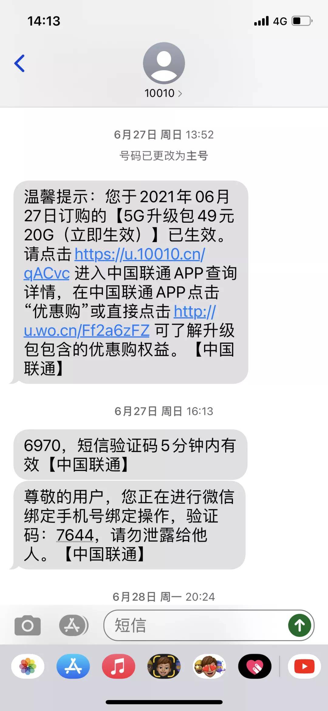 近日,黄先生也反映,他6月27日突然收到中国联通发来的一条短信,其中显示黄先生于2021年6月27日订购了“5G升级包49元20G”套餐。但黄先生表示,这个套餐是在自己完全不知情的情况下开通的,“如果不是看到这个消息,我完全不知道有这件事”。
