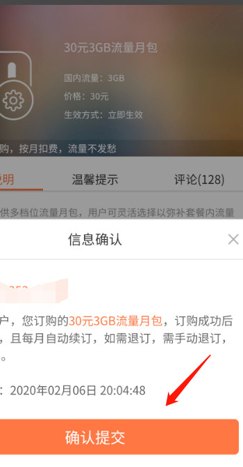 8、此时流量包已经订购完成了,系统会将流量自动充值到手机账户中。