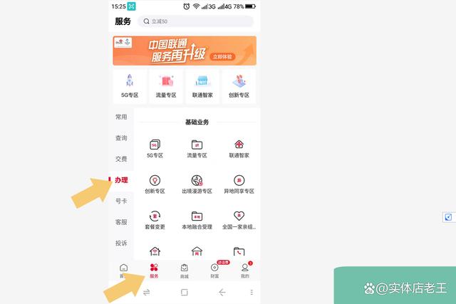 第二种是通过线上App办理,以中国联通为例,打开中国联通App。如下图: