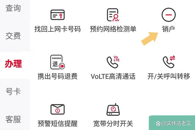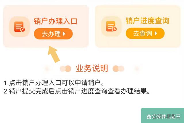 点击进入“销户”选项后,就可以看到“销户办理入口”。如下图: