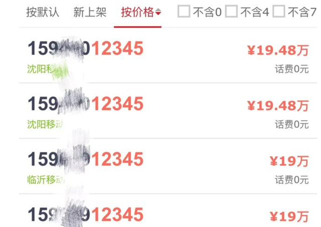 那么,手机靓号到底贵不贵呢?其实还蛮贵的,在这里就能看到,手机尾号12345的手机号码,最高值19.48万元,这种手机靓号其实就是一种兴趣爱好在里边,对于有需要的人来说,它就有价值,对于普通人来说,并没有太大实用价值。