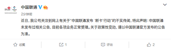 中国联通:发布“断卡”行动为不实传闻 从未发布相关公告