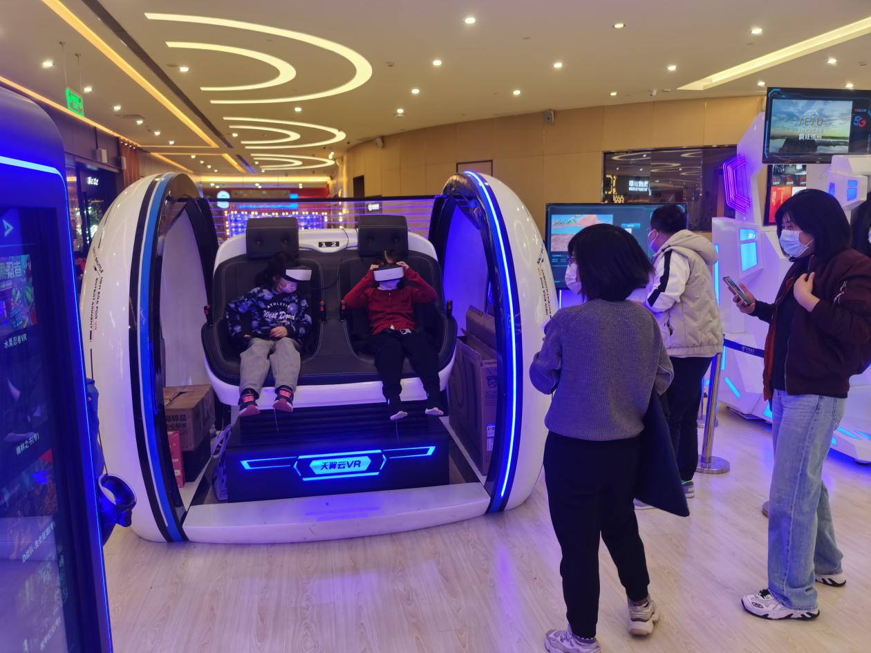 另一边,不少消费者围在飞行影院前等候观看,这款应用拥有360°立体沉浸体验,模拟现实中的星际穿越、大摆锤、过山车等刺激项目,不少消费者在体验过程中惊叫连连,表示很多项目平时不敢玩,VR版的很逼真,而且没有危险性,真是好好过了一把瘾!