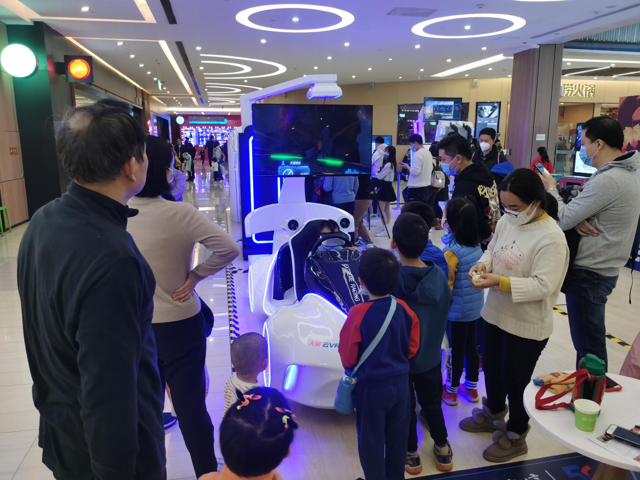 活动现场,北京电信为大家带来了最前沿、最潮流的娱乐新科技,其中VR娱乐区最受消费者欢迎,包括时空穿梭机2.0、兵团Pro、飞速闪电、飞行影院等海量潮玩,不少消费者在娱乐项目前排起长队,感受超沉浸式的VR娱乐体验。