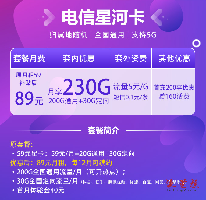 电信星河卡套餐介绍及办理入口(89元月租230G全国流量)2022-06-23关键词: 阅读(1113)