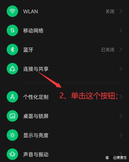 第二步:下滑找到“连接与共享”按钮,单击进入;