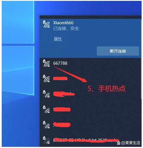 第五步:台式机搜索此热点,既可以连接至手机热点。