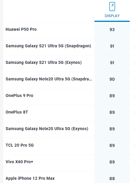 知名评测机构DXO公布了华为P50 Pro的屏幕评测得分,最终成绩为93分,排名世界第一。