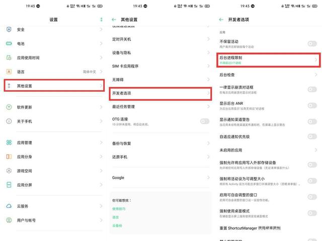第二步:「 设置 –其他设置 – 开发者选项」进入开发者选项后下拉找到后台进程限制可以根据自生需要进行设置。为了保证微信等聊天工具可以正常接收信息。设置的数量最好大于2个。
