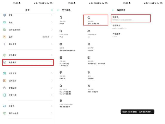 第一步:「 设置 – 关于手机 – 版本信息」连续点击7次版本号后便可开启开发模式。