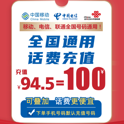 移动/电信/联通全国号码通用,94.5元充100元话费!赶快试试吧!
