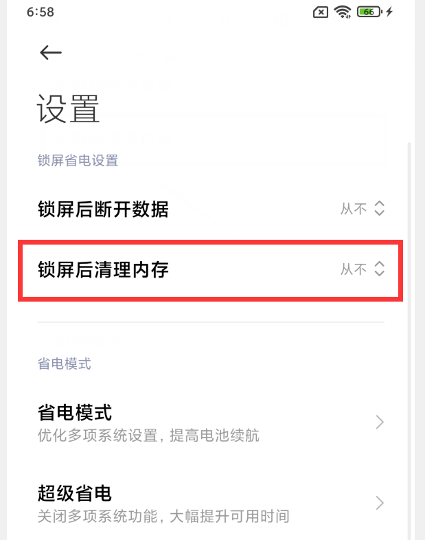 这个功能可以说,是MIUI系统的一个“杀手锏”,开启了这个功能,在小米手机锁屏后,手机就会自动清理内存,就会自动关闭所有在前台和后台运行的所有应用,让系统内存归零,处于最佳状态。打开手机的设置,点击“省电与电池”,再点击右上角的“设置”按钮,进入“电池设置”界面(如下图)。