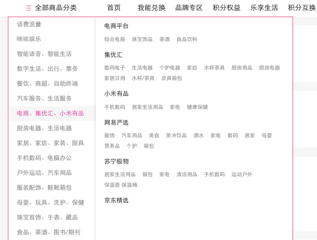 三大运营商的积分商城名字非常简单易记,分别是中国移动积分商城、中国联通积分商城和天翼积分商城关键是这庞大的产品分类,额,真的长见识了。