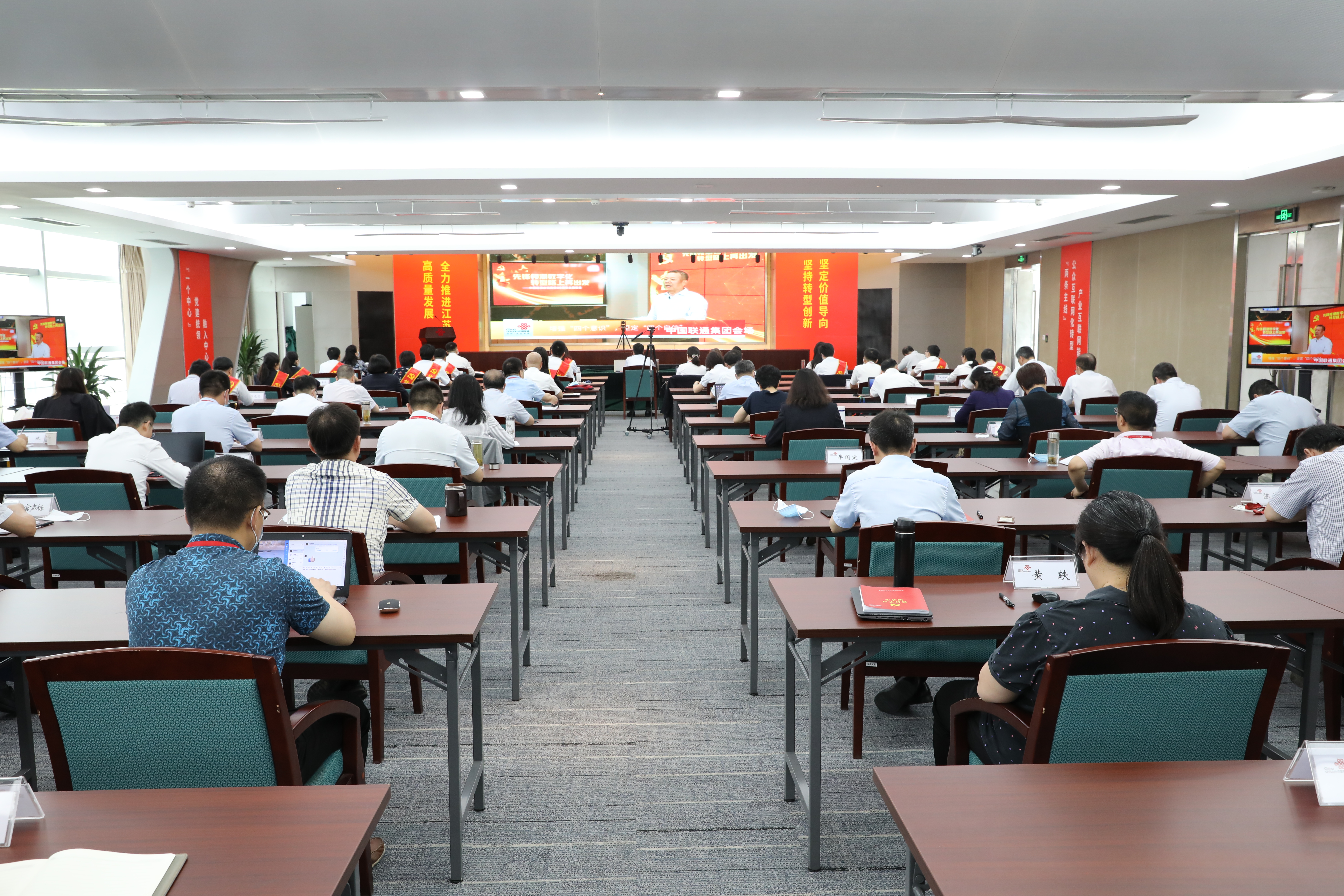 一是持续构建“六巩固一强化”工作体系,推动党建工作提质增效升级。要紧紧围绕江苏联通2020年党建工作指导思想,按照“六巩固一强化”的工作要求,持续打造“党建+N”“N+党建”深度融合的工作机制,努力实现党建工作与中心工作相融合、两促进,统筹抓好疫情防控和改革发展,结合自身实际做好阶段性总结,在下半年聚焦重点问题针对性解决,确保高质量完成全年发展目标,为推进全面数字化转型,提升企业治理体系和治理能力现代化水平提供坚强的政治保障。二是抓紧抓好“新基建”机遇,推进全面数字化转型工作细化落地。要把推进全面数字化转型上升到讲政治的高度坚决贯彻落实。要认真学习党中央相关重要部署和习总书记重要讲话精神,在学深悟透王晓初书记党课的理论、要求、目标和举措的基础上狠抓落实,持之以恒以习近平新时代中国特色社会主义思想为行动指南,以制度建设为抓手,统筹抓好疫情防控和经营发展各项工作,坚决贯彻落实集团公司党组1号文和28号文件精神,始终坚持“两个一以贯之”,加快落实八个方面转型要求,以“非常之智”化危为机,聚焦重点工作,砥砺推进数字化转型。三是以迎接“建党百年”为契机,凝聚起高质量发展的磅礴力量。既要看到公司在经营业绩以及在数字化转型方面与先进省份的差距,也要看到自身发展出现的新变化。江苏联通已经走到了一个新的关键时期,要紧抓5G和“新基建”给我们带来新转机,打开崭新且更广阔的市场。全省上下要坚定信心,抓住机遇、开足马力、奋勇争先。