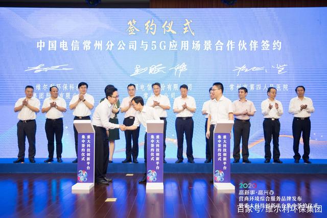7月18日上午,在常州国家高新区举办的营商环境综合服务品牌发布暨重大科技创新平台集中签约仪式上,维尔利环保科技集团股份有限公司(以下简称:维尔利集团)与中国电信股份有限公司常州分公司(以下简称:常州电信)签订了企业5G+工业互联网项目建设及应用战略合作协议。