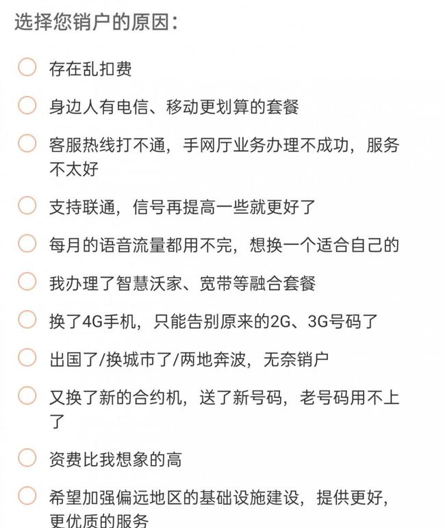 2、第二步就会询问你销户的原因,这个就根据你的实际情况来选了。