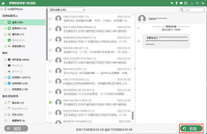- 苹果短信可以恢复吗