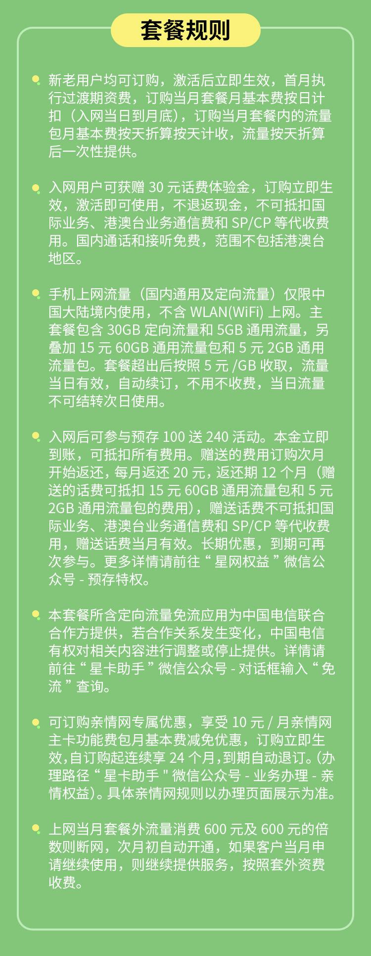 注意: 国内通话和接听免费范围不包括中国港澳台地区,手机上网流量仅限中国大陆境内使用,不含WLAN(Wi-Fi)上网。