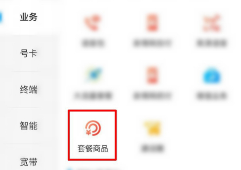 在“业务”中选择“套餐商品”。