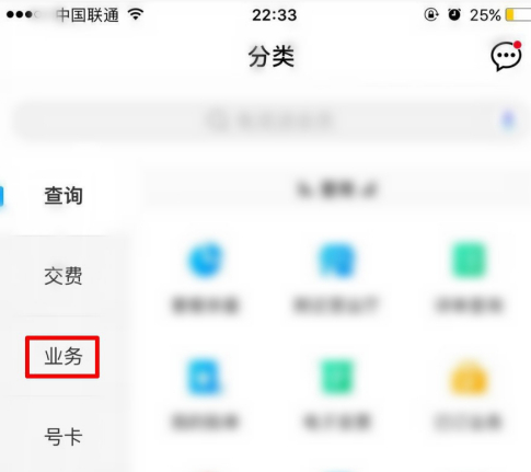 在“分类”中进入“业务”。