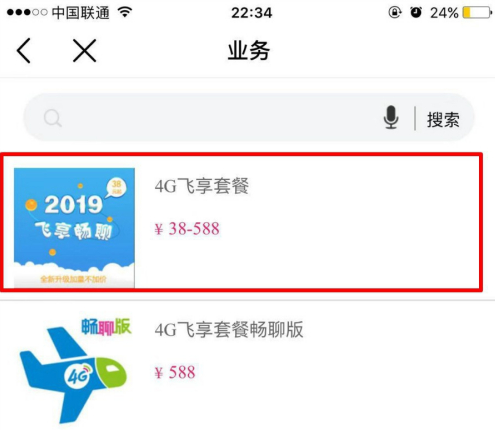 选择你要办理的套餐业务。