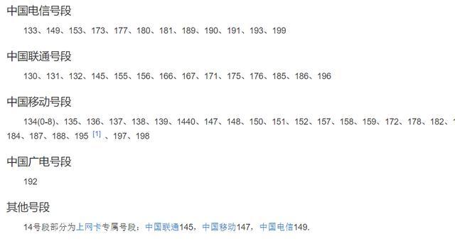 手机号码的前三位:区分移动运营商的基本号码
