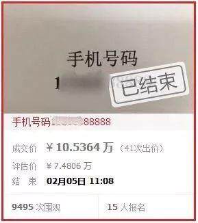 2018年2月初,该手机号码在淘宝司法拍卖平台中如期开拍,经过41次竞价,33次延时,引起了9000多次围观后,最终以105364.20元成交,据了解,买受人已按期支付了全部拍卖款项。