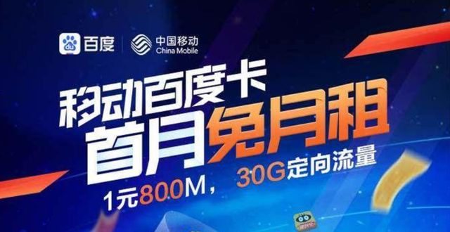 随着移动互联网的快速发展,运营商的语音通话功能在减弱,相反流量却变得较为重要(很多软件也推出了基于流量的语音通话功能,例如微信的语音通话)。倾向于流量的手机用户,运营商与互联网公司联合推出的定向流量号卡性价比较高。大家可以根据自己手机APP的使用习惯选择适合的号卡,例如有头条系、百度系、阿里系等不同的定向流量选择。下如就是中国移动与百度联合推出的移动百度卡,首月免月租,每月月租费仅为26元便可以享受30G的定向流量,套餐外流量1元800兆。