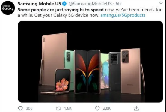就连老对手”三星也上线调侃起苹果5G姗姗来迟,还顺道为自己的5G手机带了一波货。三星都专门发推特上吐槽:“一些人现在才跟速度说Hi,而我们已经跟速度做了一段时间朋友了。”而苹果本次发布会的宣传语刚好是“Hi,Speed”。