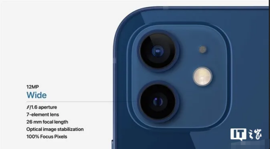 Phone 12 Mini和iPhone 12采用的都是广角+超广角的后置双摄配置,和11一样是1200万像素主摄+1200万像素超广角;前置方面则是1200万像素+红外摄像头。