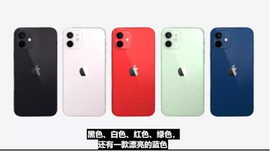 其中iPhone 12 mini和iPhone 12有五款颜色:蓝色、黑色、白色、绿色和红色。小编更偏心这个荧光浅绿色,相比去年11的绿清新了很多。