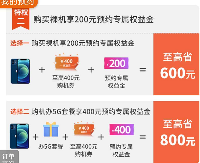 也就是通过掌上10000号预约iPhone 12系列能省200元/400元,配合5G套餐,最多可省800元!如果去线下营业厅办理,则最高直降3000元!