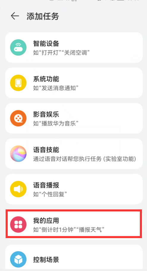 点击“我的应用”(如果没有“我的应用”,也可以通过”语音播报”来设置),进入到“我的应用”界面,这里会显示所有能添加的应用列表。