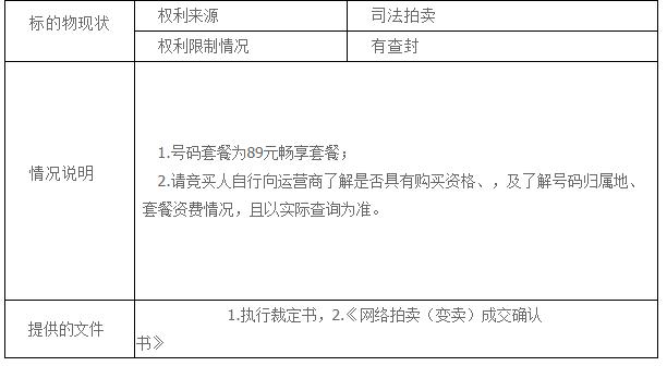 4.有意者请先到运营商处了解号码及过户手续情况,未了解的竞买人视为对本标的实物现状的确认,责任自负。