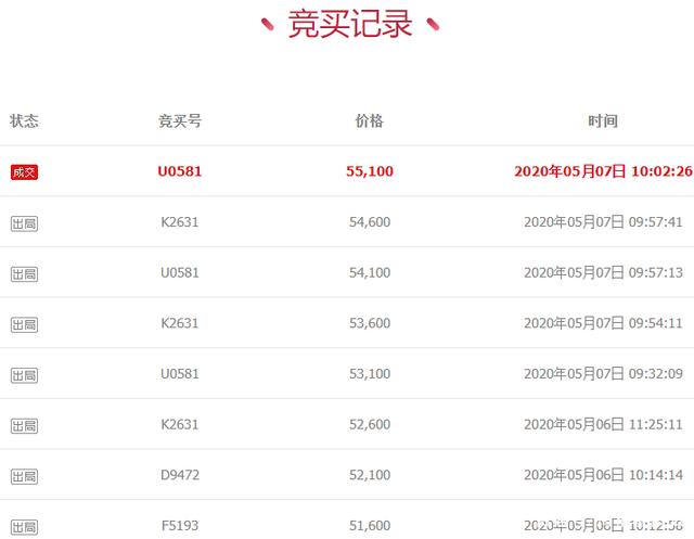 用户姓名邢某通过竞买号U0581于2020年05月07日在杞县人民法院于阿里拍卖平台开展的“155XXX44444手机号码”项目公开竞价中,以最高应价胜出。