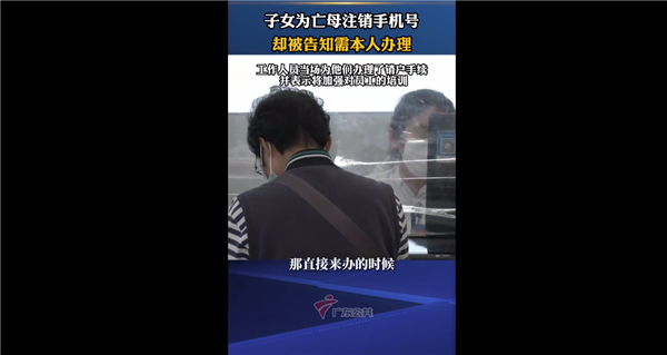 近日,广东广州,一女子前往移动营业厅,为自己的亡母办理注销手机号。结果办理业务的工作人员告知女子需本人前来办理。
