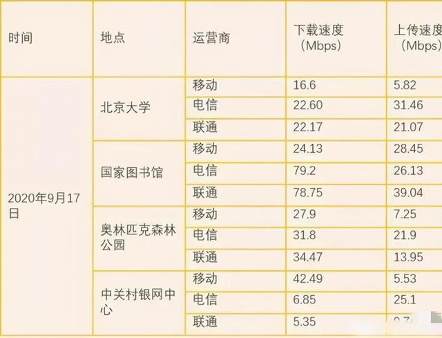 值得注意的是,搜狐科技这一次的测试,并非是用测得的实际数值和4G理论速度数值做对比,而是和早在7年前在同一地点做的测速数据做综合比较。搜狐科技的这四个点位分别是北大校园、国家图书馆、奥林匹克森林公园、中关村银网中心,测得的结果也很是让人意外——除了中国移动在森林公园和中关村点位的4G网速比起7年前略有上升以外,中国电信、中国联通以及中国移动另外两个点位的4G网络相对2013年全部出现了下滑。